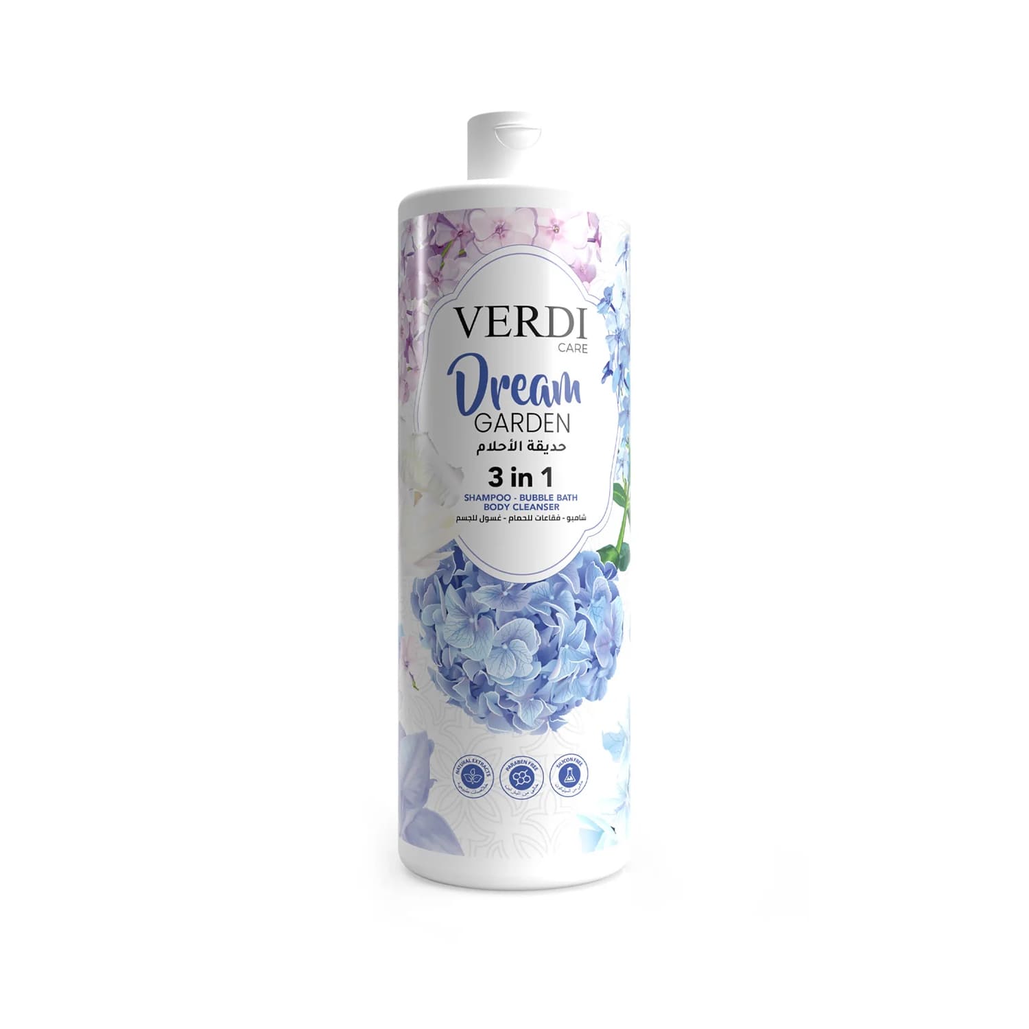 Гель для душу 3в1 Dream Garden Verdi — 800 мл — універсальний засіб, що поєднує у собі функції шампуню, піни для ванни та очищувача для тіла. Цей багатофункціональний продукт ідеально підходить для тих, хто цінує ефективність і комфорт у догляді за собою. Натхненний красою саду мрій, гель створений на основі натуральних екстрактів, які забезпечують ніжне та делікатне очищення шкіри й волосся.