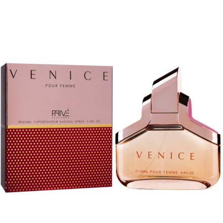 Venice Prive Parfums – жіноча парфумована вода, яка укутає хвилями квіткової ніжності. Легкий, ніжний та привабливий аромат, жіночний та приємний. Розкривається акордами солодкої півонії. У серці звучать фруктові півтони стиглого яблука та чарівні ванільні нотки. Кінцева нота подарує теплоту амбри та мускусу, залишаючи за собою ароматний шлейф. Венеція зустріне вас ароматним та красивим букетом квітів, який змусить серце битися частіше.